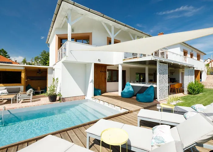 Kumbhaka Villa는 사우나, 일광판, 요가 강습뿐만 아니라 자쿠지, 뜨거운 욕조, 사우나도 제공합니다. Madarles Csopak는 빌라에서 도보로 25분 이내에 있습니다.
